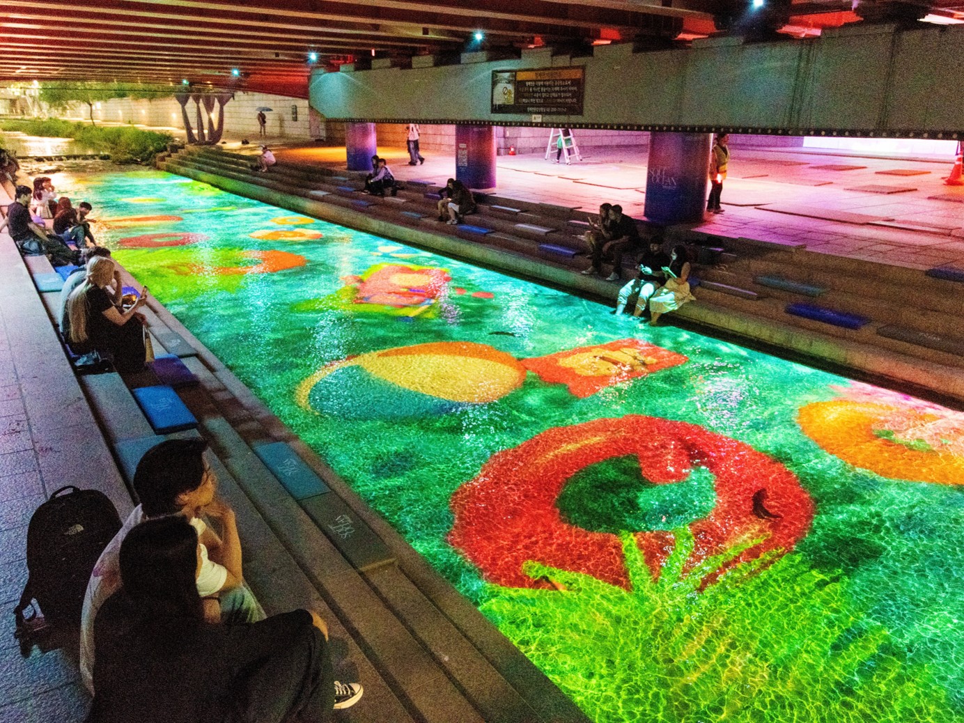 What makes this exhibition especially unique is that new media art content is unveiled each month on the waters of Cheonggyecheon—meaning every visit offers a fresh experience.