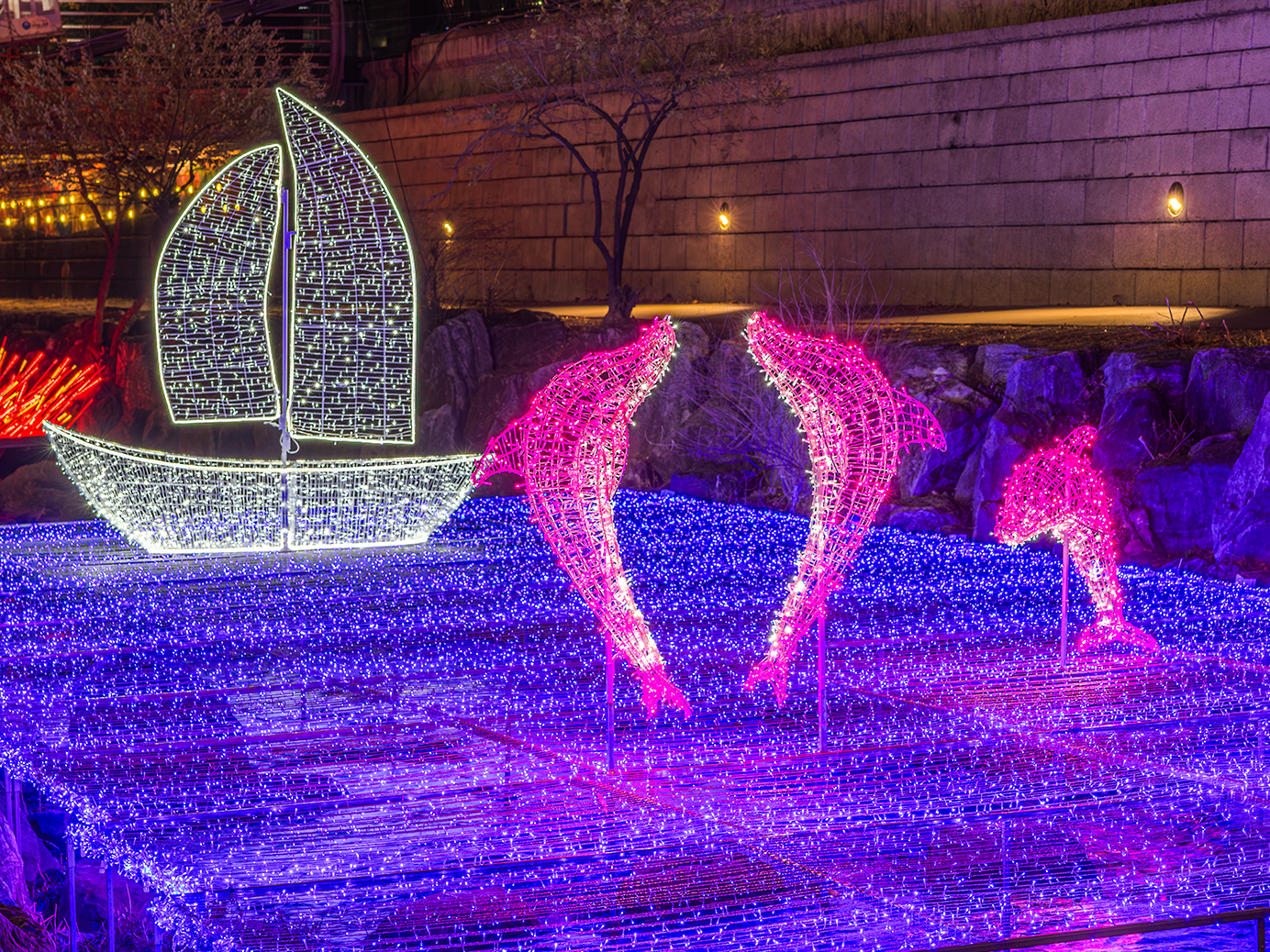 美しい光をたどってチョンゲチョン(清渓川)の散策路を歩けば、光のランタンフェスティバルを存分に楽しめるでしょう。